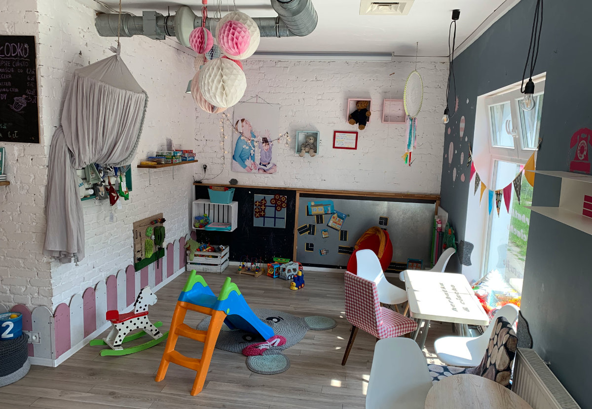 W Alt Cafe na ul. Legionów Gabi najbardziej lubi pizzę i kulki! To jedno z nielicznych miejsc, gdzie plac zabaw jest większy niż część kawiarniana (przynajmniej ta w jego bezpośrednim sąsiedztwie). Można też usiąść na kawę w części barowej, bo dzięki systemowi kamer i telewizji, widać wszystko, co robi dziecko bawiące się na placu zabaw w głębi lokalu. A jest czym się bawić! Domek ze zjeżdżalnią wprost do basenu z kulkami, tor wyścigowy wokół dywanu, liczne wózki i jeździki, którymi można się po nim ścigać, a do tego ściana wyklejona klockami Lego! Gabi potrafi przepaść tam na godziny! Zaletą tego miejsca jest też to, że oprócz zdrowych ciast, lemoniady i pysznej kawy, serwują zupy i pizze, a to oznacza, że można przyjść tam na lekki lunch czy, jak to w naszym przypadku bywa częściej, na podwieczorek połączony z kolacją. Dzięki tym wszystkim atrakcjom Alt Cafe jest idealnym miejscem na spotkania biznesowe dla mam, które tak jak ja prowadzą własną działalność i czasami muszą spotkać się z klientem poza godzinami otwarcia przedszkola. Ja bez wyrzutów sumienia załatwiam interesy, a Gabi bawi się w najlepsze!